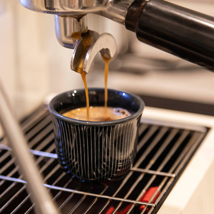The flared opening of each cup expresses the aroma of your favourite coffee, a shape that is accentuated by the colourful translucent glaze that breaks on the delicate pinstripe embossment of its surface, the wider opening will also let you be creative allowing space for a little latte art. The new cups come in 3 sizes: 80ml for Espresso and two larger sizes for drip coffee and Cappuccino at 150ml and 250ml.